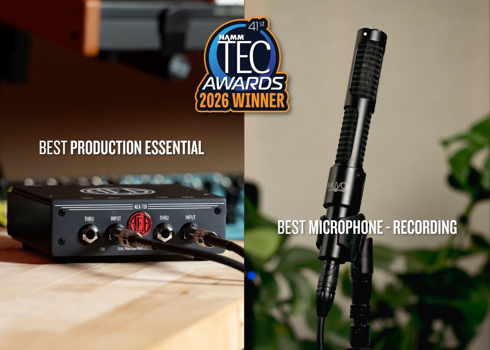 We’re thrilled to share that AEA took home two TEC Awards at the 41st Annual NAMM Technical Excellence & Creativity Awards on January 22nd in Anaheim. The Nuvo N28 Compact Stereo Ribbon Microphone won in the Microphones – Recording category, and the TDI Duo Dual Phantom-Powered Direct Box was honored in the Production Essentials category.