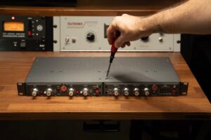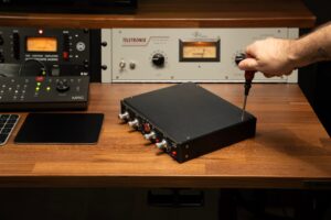 To mount the TRP2, TRP3, or 1029, take the top plate off each unit and place the rack tray on top of the unit(s) you’re mounting, lining up the holes. Use the same screws from the top plate (or the supplied screws; they’re the same) to affix the rack tray to the unit(s). The screws used for this are 4-40 1/4″ Phillips Flathead Undercut screws.