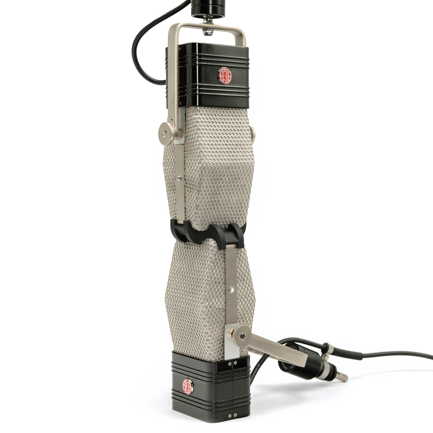 A coupler designed to hold two R44 microphones in perfect 90-degree Blumlein configuration. The R44’s large magnets make maintaining precise placement a challenge; this jig sits between the mics and locks everything in place, ensuring your stereo setup stays exactly where you put it. Purpose-built for the R44, it’s a small accessory that makes a big difference when you’re setting up for a session and need everything dialed in fast.